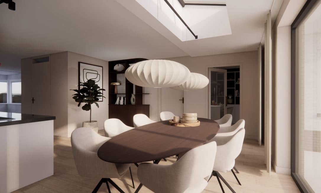 Ook het interieurontwerp speelt hierin een centrale rol: waar eerder de uitstraling zakelijk en functioneel was, wordt nu gekozen voor een warme en uitnodigende uitstraling. Met natuurlijke materialen, sfeervolle verlichting en tactische afwerkingen krijgt deze woning een compleet nieuw karakter – zonder de kwaliteiten van het bestaande gebouw uit het oog te verliezen.