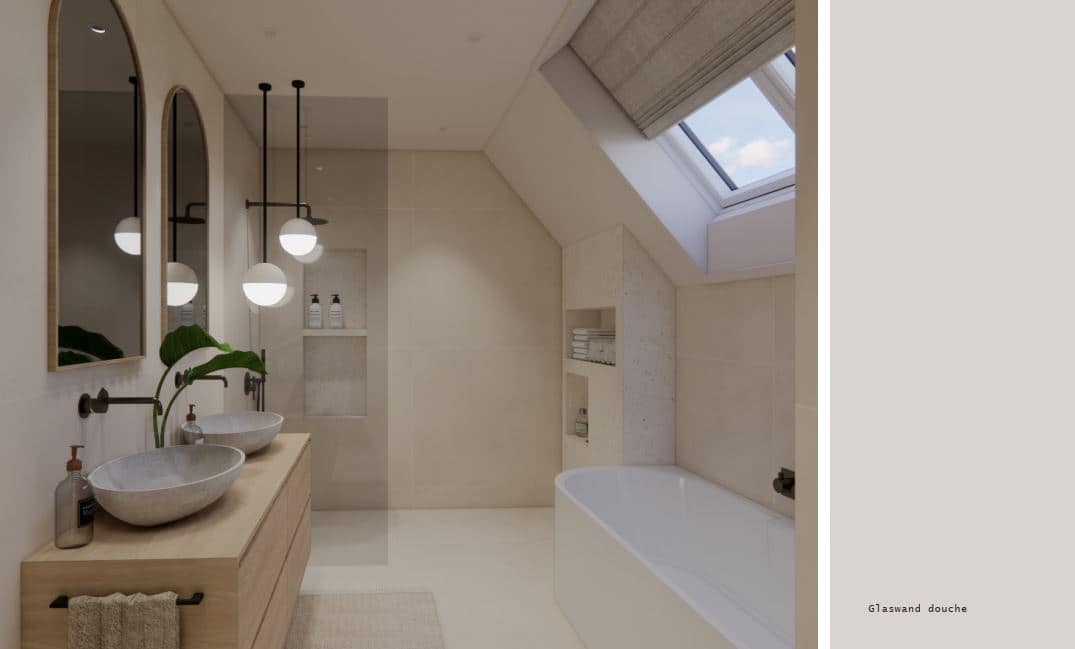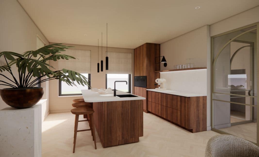 Bijzonder zijn ook de strakke dakkapellen die zijn opgetrokken uit metselwerk en daardoor volledig opgaan in het gevelbeeld. Dit zorgt voor een ingetogen, maar krachtige uitstraling waarbij de detaillering centraal staat. De entree wordt benadrukt door een omlijsting van hardsteen – een knipoog naar klassieke architectuur – en vormt een stijlvol welkom voor bewoners en bezoekers.