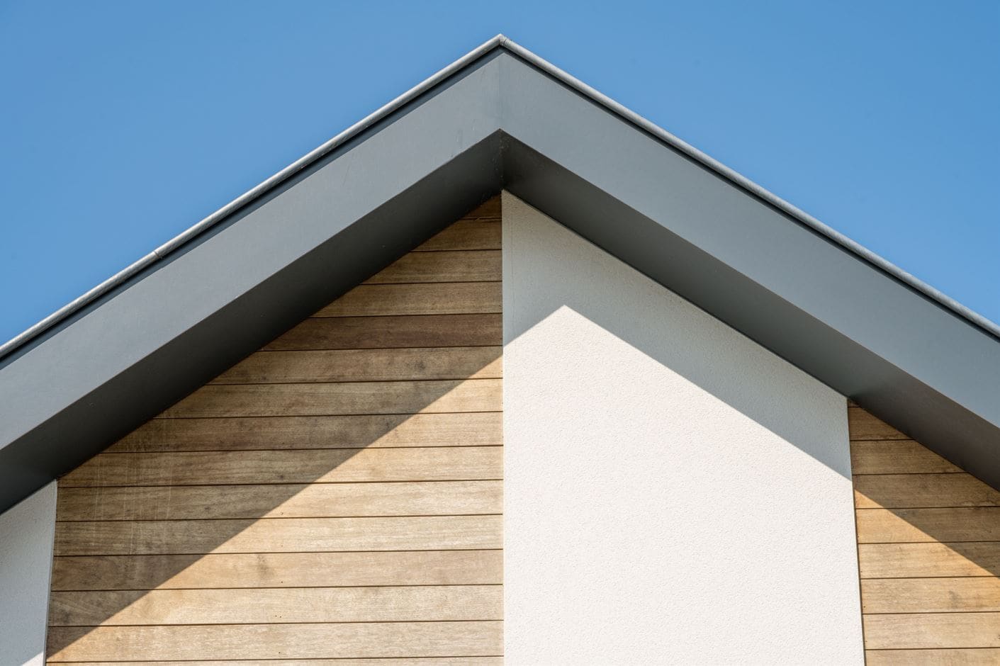 De dakafwerking is uitgevoerd in Rockpanel-delen in een stijlvolle antracietkleur. Rockpanel staat bekend om zijn duurzaamheid, onderhoudsarm karakter en uitstekende weerbestendigheid. Het materiaal behoudt langdurig zijn kleur en vorm, waardoor de woning niet alleen esthetisch aantrekkelijk is, maar ook toekomstbestendig.